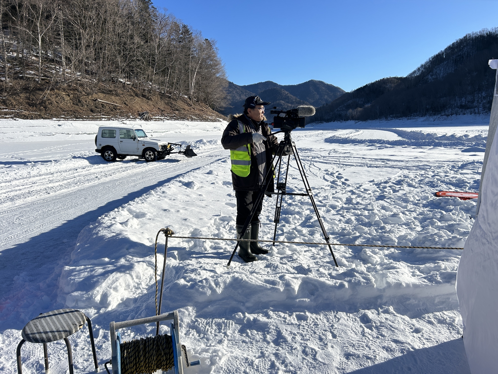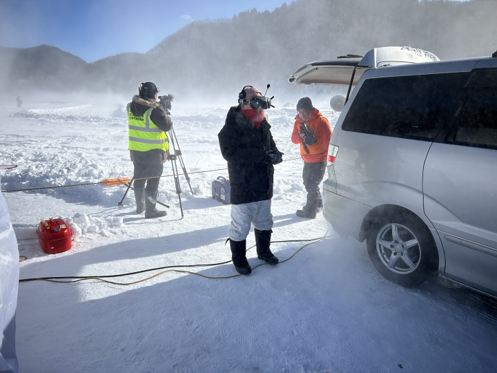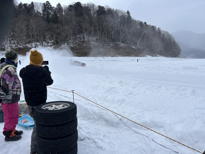 糠平湖氷上タイムトライアル 競技車両の追走シーンを追加編集